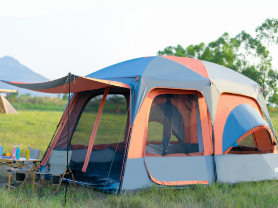 Это кемпинговая палатка с двумя спальнями и одной гостиной площадью 14 квадратных метров, подходящая для 8-12 человек. Ткань представляет собой ткань Оксфорд 150D с солнцезащитным козырьком, защитой от дождя и воды. В целом он красив, удобен и прост в сборке. Отличный партнер для кемпинга в дикой природе!